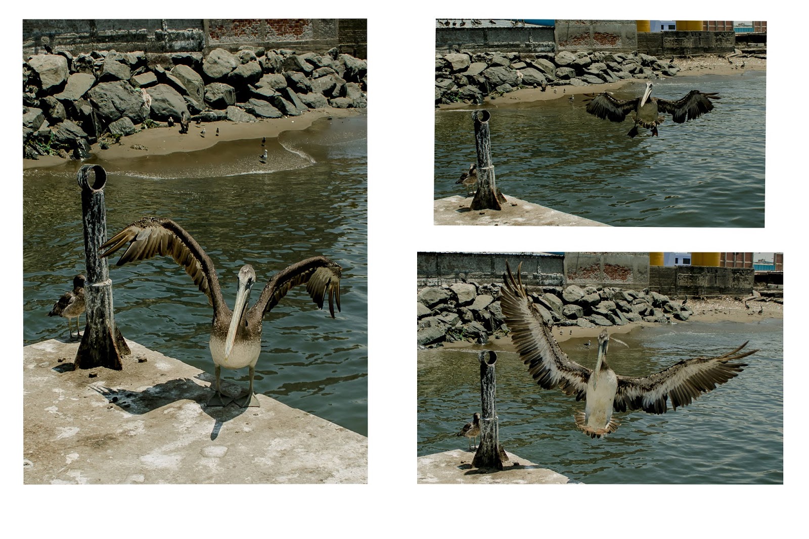 Mientras podía observar y ver algo interesante que fotografiar. Pues sucedió lo que ahora llamo "Tres pasos" Idea inspirada del Post en fb! de Carlos Sanchez Fotografía. Su idea de Vuelo, vuelvo. Me hizo recordar que tenia estas 3 fotos. Mientras tomaba las fotos de vista. Apareció este señor Pájaro! y casi me aterriza, pude capturarlo, de hecho son esos tiempos justo antes de que llegue al muelle!